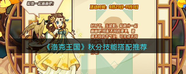 《洛克王国》游戏中秋分挺好的,宠物的双抗比较高,双防控,可以在赏秋绘活动中获得!配招推荐:除风枕石+层林尽染+草木知威/千岩万壑+催眠粉!下面手游网小编就给大家带来了《洛克王国》秋分技能搭配推荐,想要了解详情的一起看看吧!
