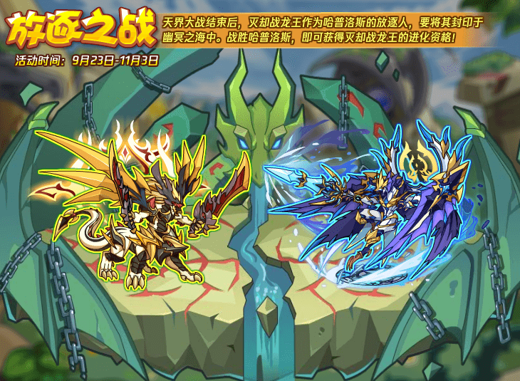 天界大战结束后,灭却战龙王作为哈普洛斯的放逐人,要将其封印于幽冥之海中。战胜哈普洛斯,即可获得灭却战龙王的进化资格!
