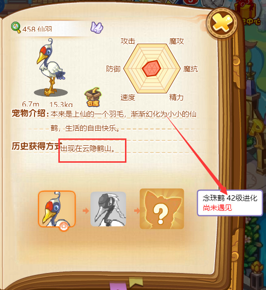 洛克王国念珠鹤是由仙羽进化而成,而仙羽是作为VIP专属宠物,只能在VIP专属场所云隐鹤山处捕捉,普通玩家没法捕捉,需要开通VIP才可进入。