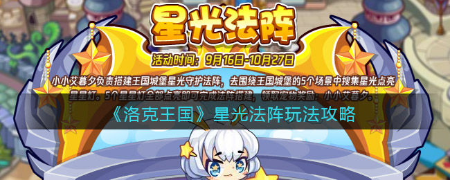 洛克王国星光法阵怎么玩?9月16日-10月27日大家进入活动地图【星之路】可参与活动,5个星星灯全部点亮即可完成法阵搭建,领取宠物奖励:小小艾暮夕。下面是小编给大家带来的《洛克王国》星光法阵玩法攻略,感兴趣的小伙伴们一起来看看吧。