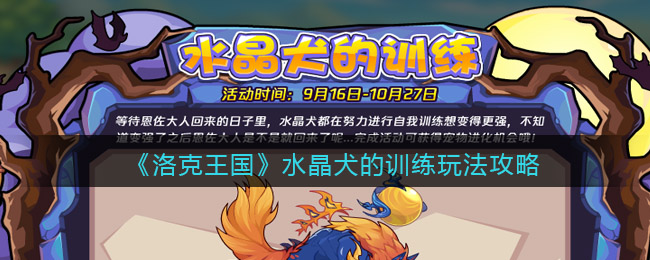 洛克王国水晶犬的训练怎么玩?9月16日-10月27日大家进入活动地图暗黑岭可参与活动,BOSS挑战不难,基本会携带防控,大家可以首发立冬斩杀,没成功就换上苍羽、魔武等宠物对战,挑战难度一般。下面是小编给大家带来的《洛克王国》水晶犬的训练玩法攻略,感兴趣的小伙伴们一起来看看吧。