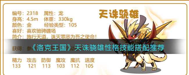 以上就是《洛克王国》天诛骁雄性格技能搭配推荐,更多精彩内容,请点击关注手游网更新!