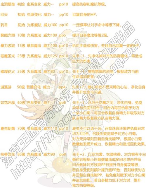 3.九月登场花神,有多种属性的输出技能,参赛系别组合合适时可以起到一定作用,第规情况可带逍遥游提高生存能力,并作为高先手技能辅助连段输出。