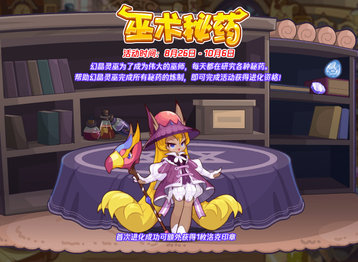 幻晶灵巫为了成为伟大的巫师,每天都在研究各种秘药。帮助幻晶灵巫完成所有秘药的炼制,即可完成活动获得进化资格!