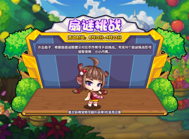 洛克王国小小丹青怎么获得-?8月12日-9月8日艾美特山岭参与【扇谜挑战】活动,点击扇子,根据扇面谜题提交对应农作物可开启挑战。完成10个扇谜挑战即可领取宠物:小小丹青。下面是小编给大家带来的《洛克王国》小小丹青获取方法,感兴趣的小伙伴们一起来看看吧。