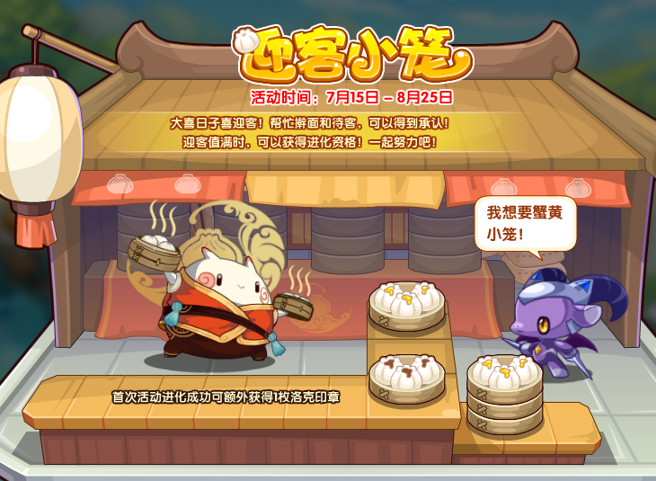 大喜日子喜迎客!帮助擀面和待客,可以得到承认!迎客值满时,可以获得进化资格!一起努力吧!