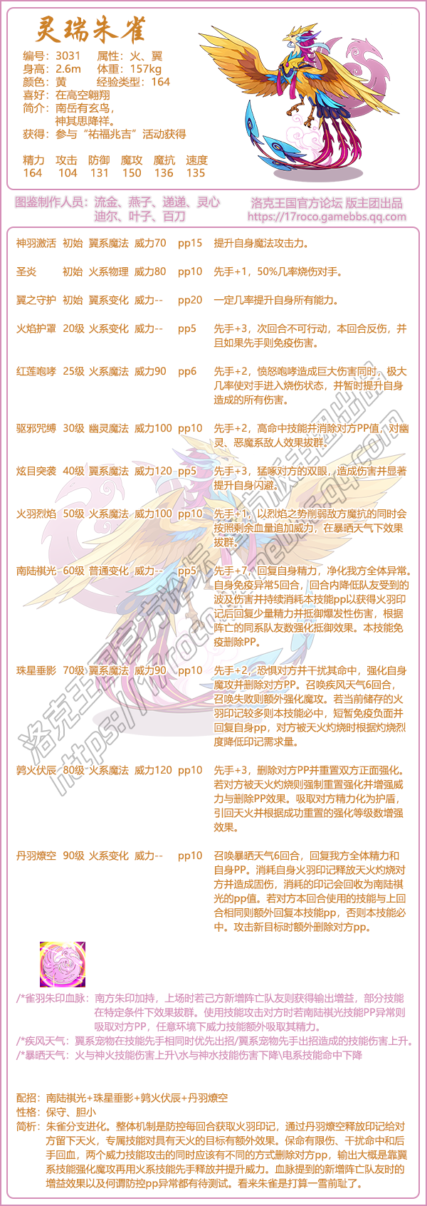 以上就是小编整理带来的《洛克王国》灵瑞朱雀技能表图鉴介绍,更多精彩内容,请点击关注手游网!