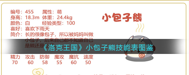 以上就是小编整理带来的《洛克王国》小包子熊技能表图鉴介绍,更多精彩内容,请点击关注手游网!