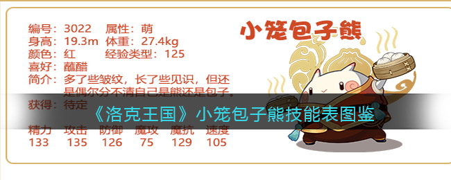 以上就是小编整理带来的《洛克王国》小笼包子熊技能表图鉴介绍,更多精彩内容,请点击关注手游网,小编将持续为您更新!