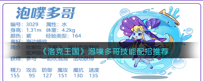 以上就是小编整理带来的《洛克王国》泡噗多哥技能配招推荐介绍,更多精彩内容,请点击关注手游网,小编将持续为您更新!