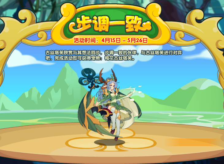 古丝塔芙欣赏与其想法同步,步调一致的伙伴,与古丝塔芙进行对弈吧,完成活动即可获得宠物:梅花古丝塔芙。