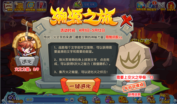 洛克王国游戏中火之炽云回归!小洛克们先要挑战右边的BOSS,获得需要追溯的文字和数量。下面手游网小编珞珞就给大家带来了《洛克王国》追溯的文字获取方法介绍,感兴趣的速来围观吧!