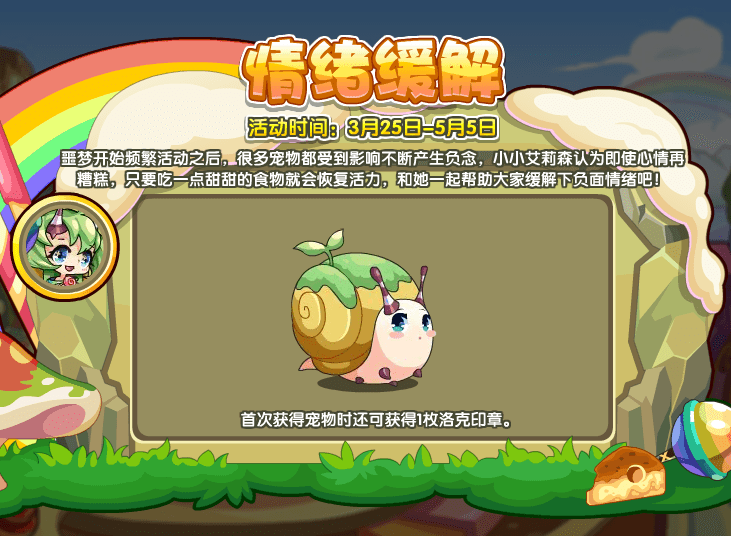 春天到了,和“踏青”一同出发去郊游吧,遇到草系伙伴并挑战成功,就可以获得春日花环哦!累计12个春日花环就可以兑换宠物“踏青”。