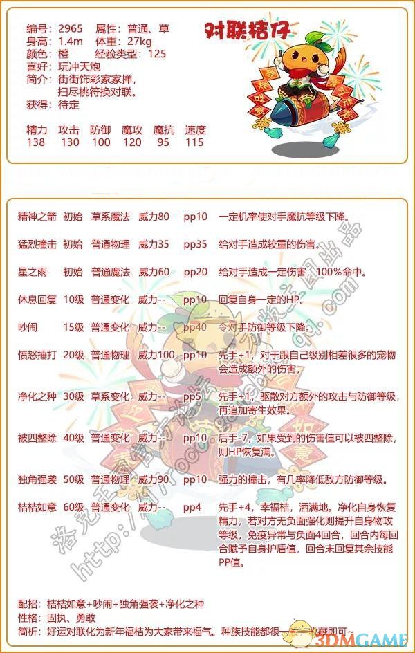 对联桔仔:获取方法 | 技能表 | 性格推荐 | 技能配招