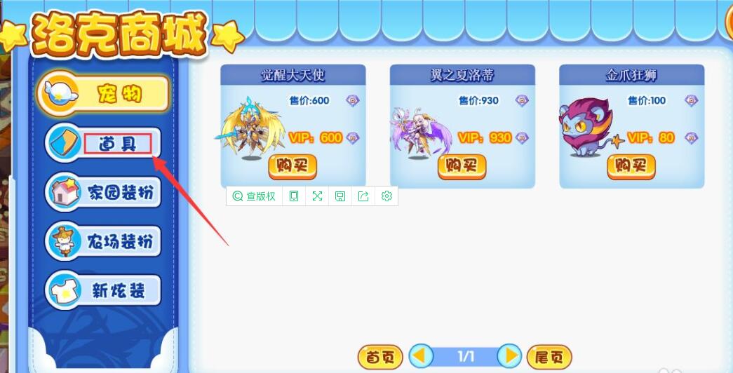 1、点击商场,然后点击【道具】选项。