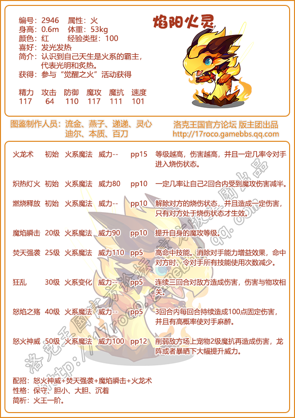 以上就是小编整理带来的《洛克王国》焰阳火灵配招推荐,更多精彩内容,请点击关注手游网,小编将持续为您更新!