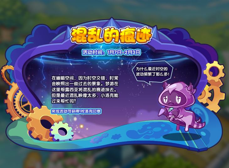 在幽暗空间,因为时空交错,时常会映照出一些过去的景象。梦游在这里帮露西亚将混乱的痕迹抹去。但是最近混乱映像太多,小洛克能过来帮忙吗?(小贝的提示:这期活动剧情信息量也太大了吧!)