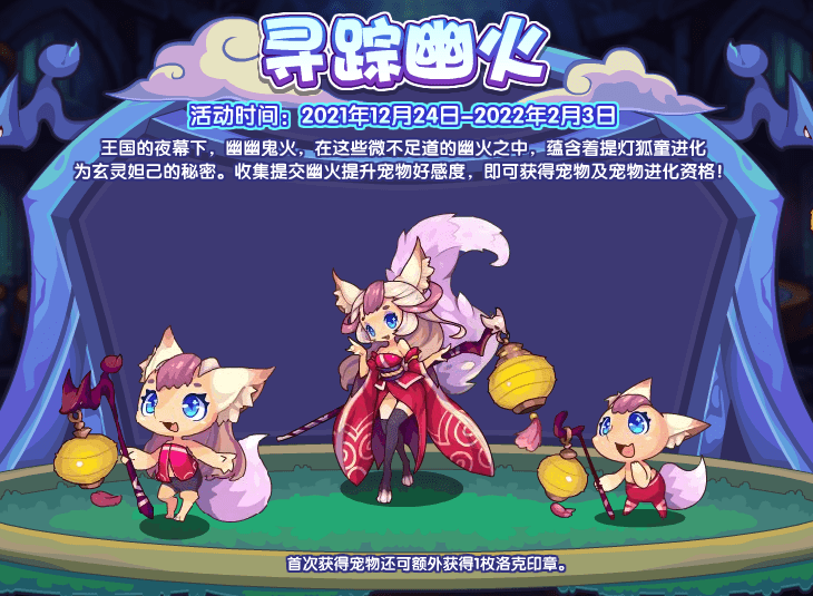 活动获得:提灯狐童,掌灯媚狐,玄灵妲己,洛克印章