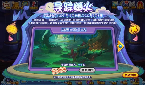 王国内这些微不足道的幽火中,蕴藏着提灯狐童不断进化的秘密。收集一定数量幽火即可获得宠物及进化资格!