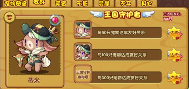 蒂米、仙踪宝儿需要与宠物达成友好关系并达到一定数量后在“亲密度成就图鉴→友好”中领取,不可吸引。