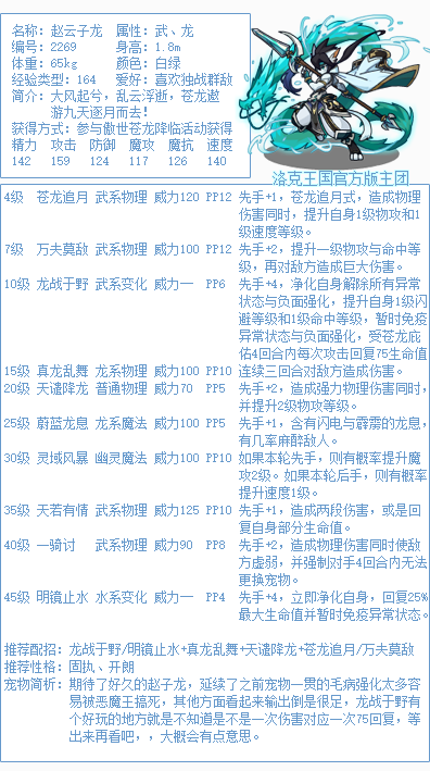 以上就是小编整理带来的《洛克王国》赵云子龙技能表图鉴,大家还喜欢吗?更多精彩内容,请点击关注手游网,小编将持续为您更新!