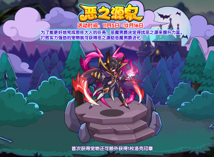 《洛克王国》游戏中11月5日更新后参与【恶之源泉】活动,打败实力强劲的宠物就可获得恶之源助恶魔男爵进化!。下面手游网小编珞珞就给大家带来了《洛克王国》恶魔男爵获取方法介绍,感兴趣的速来围观吧!