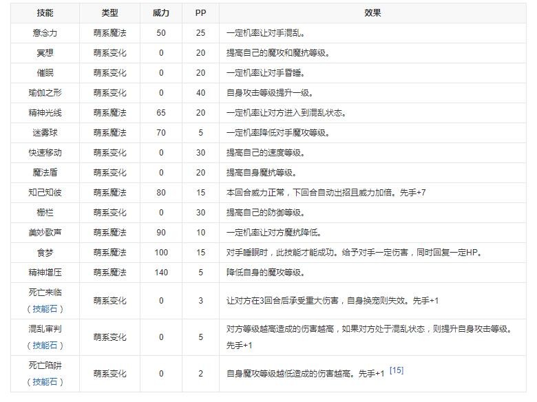 技能表、种族值