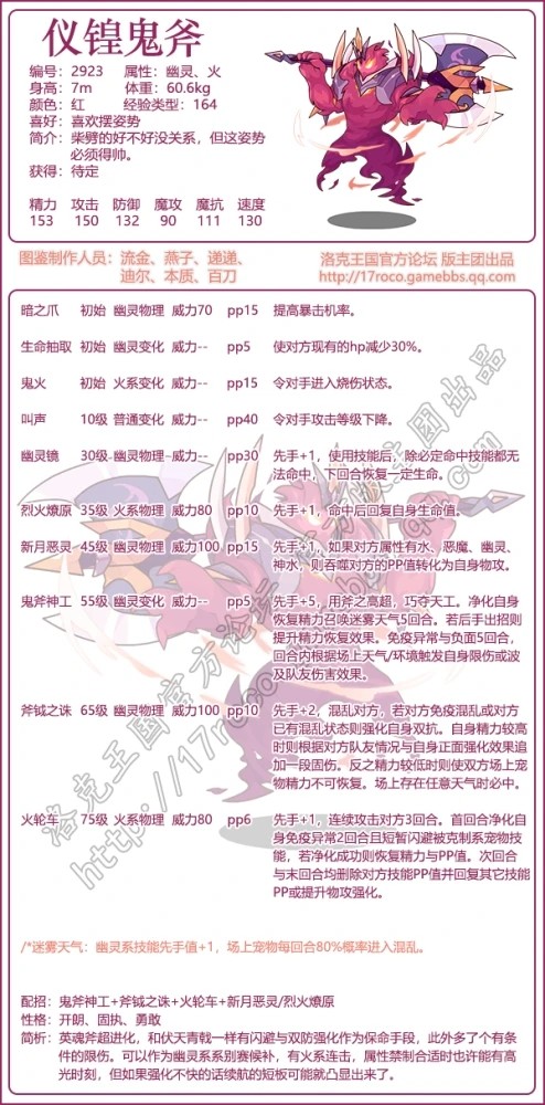 《洛克王国》仪锽鬼斧是英魂斧超进化获取的宠物,从技能和种族值来看,这是一个物攻宠,所以亲密度加点推荐【形影】,配方为:火花便当+圣水+海洋之心。