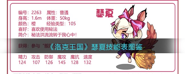 以上就是小编整理带来的《洛克王国》瑟夏技能表图鉴介绍,大家还喜欢吗?更多精彩内容,请点击关注手游网,小编将持续为您更新!