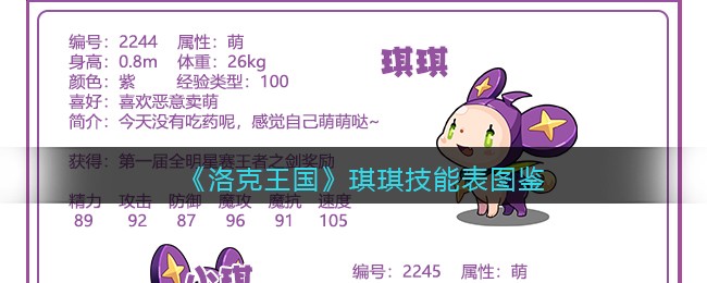以上就是小编整理带来的《洛克王国》琪琪技能表图鉴介绍,大家还喜欢吗?更多精彩内容,请点击关注手游网,小编将持续为您更新!