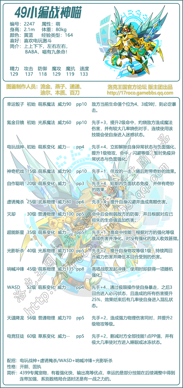 以上就是小编整理带来的《洛克王国》49小编战神喵技能表图鉴介绍,大家还喜欢吗?更多精彩内容,请点击关注手游网,小编将持续为您更新!