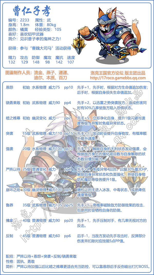 以上就是小编整理带来的《洛克王国》曹仁子孝技能表图鉴介绍,大家还喜欢吗?更多精彩内容,请点击关注手游网,小编将持续为您更新!