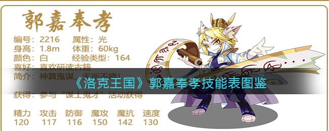 以上就是小编整理带来的《洛克王国》郭嘉奉孝技能表图鉴介绍,大家还喜欢吗?更多精彩内容,请点击关注手游网,小编将持续为您更新!