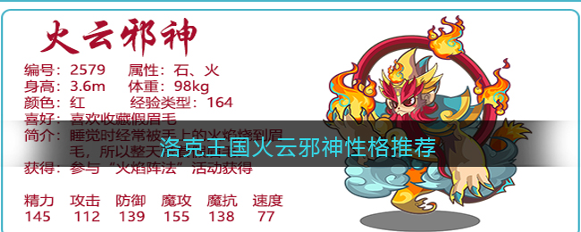 以上就是小编整理带来的洛克王国火云邪神性格推荐介绍,大家还喜欢吗?更多精彩内容,请点击关注手游网,小编将持续为您更新!