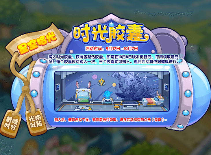 搜索过去的点滴,做成穿越时光的胶囊进行拾取。购买时光胶囊的用户可同时获得返钻胶囊哦~