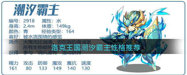 以上就是小编整理带来的洛克王国潮汐霸主性格推荐介绍,大家还喜欢吗?更多精彩内容,请点击关注手游网,小编将持续为您更新!
