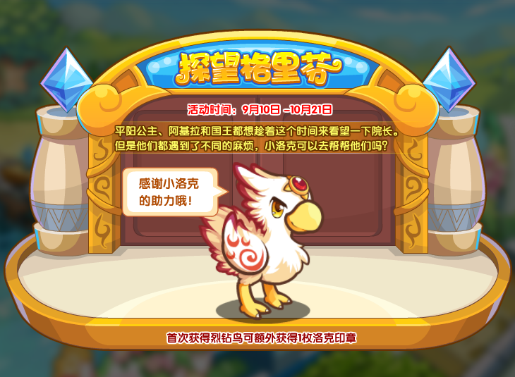 在《洛克王国》游戏中,每周会有一次更新,更新过后新活动就上线了!游戏中【探望格里芬】活动怎么玩呢?这是9月10日即将上线的活动之一,下面手游网小编珞珞就给大家带来了《洛克王国》探望格里芬活动攻略介绍,感兴趣的速来围观吧!