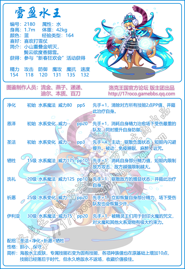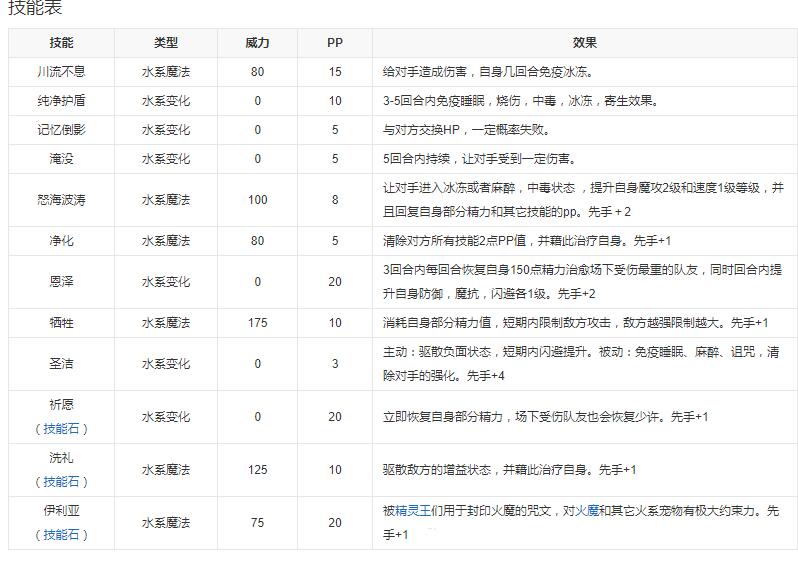 建议配招:圣洁+洗礼/祈愿+牺牲+净化。努力值:魔攻252,精力252,防御6。水王不需要释放技能,就可以天生免疫麻醉、诅咒、催眠。因此,水王可破圣藤的预言。被预言后,换上水王,预言自然无效。水王的出现绝对克制了修罗王、火魔和草王。