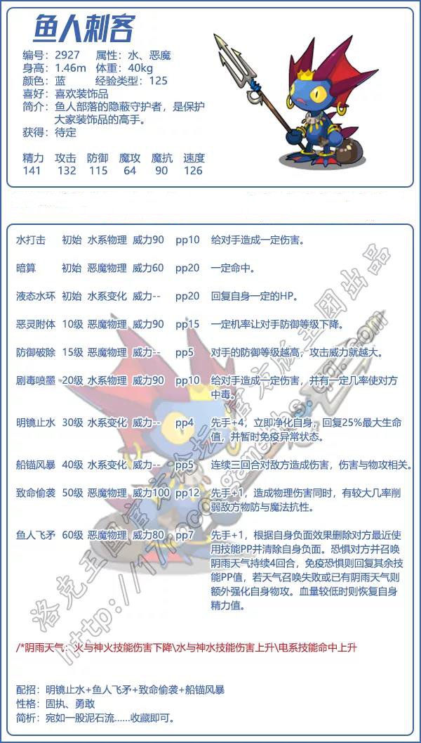 以上就是小编整理带来的《洛克王国》鱼人刺客技能表图鉴介绍,大家还喜欢吗?更多精彩内容,请点击关注手游网,小编将持续为您更新!