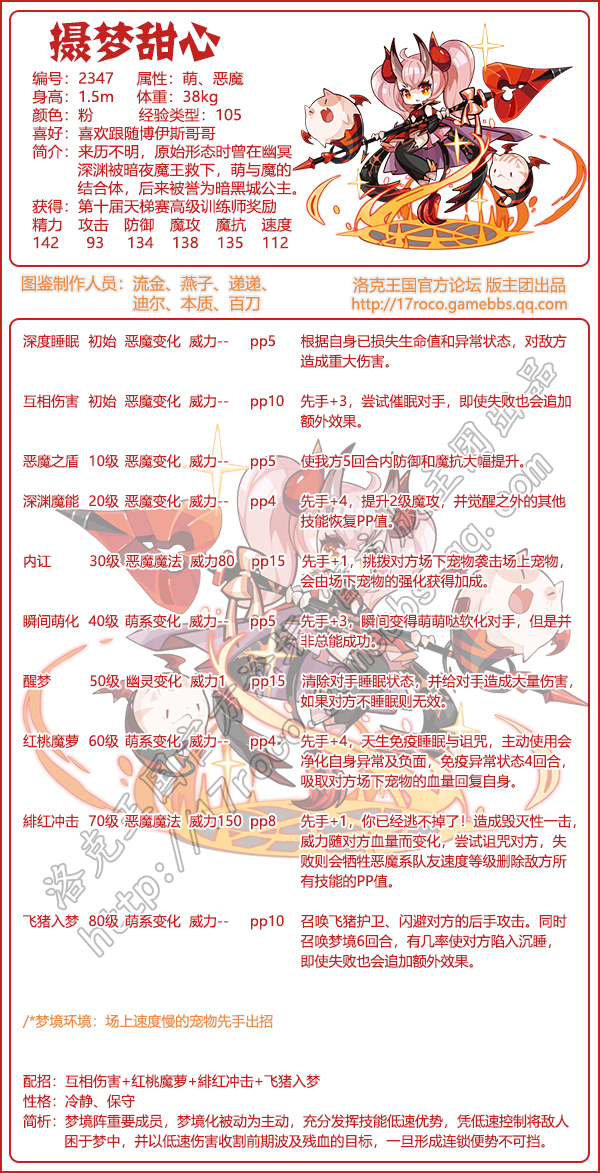 《洛克王国》是一款轻松好玩的休闲类手游,Q萌的游戏画风,玩家将被置身于一个精彩的世界中!游戏中拥有海量的宠物精灵,下面手游网小编给大家带来了《洛克王国》摄梦甜心技能表图鉴介绍,想要知道【摄梦甜心】信息的小伙伴速来围观吧!