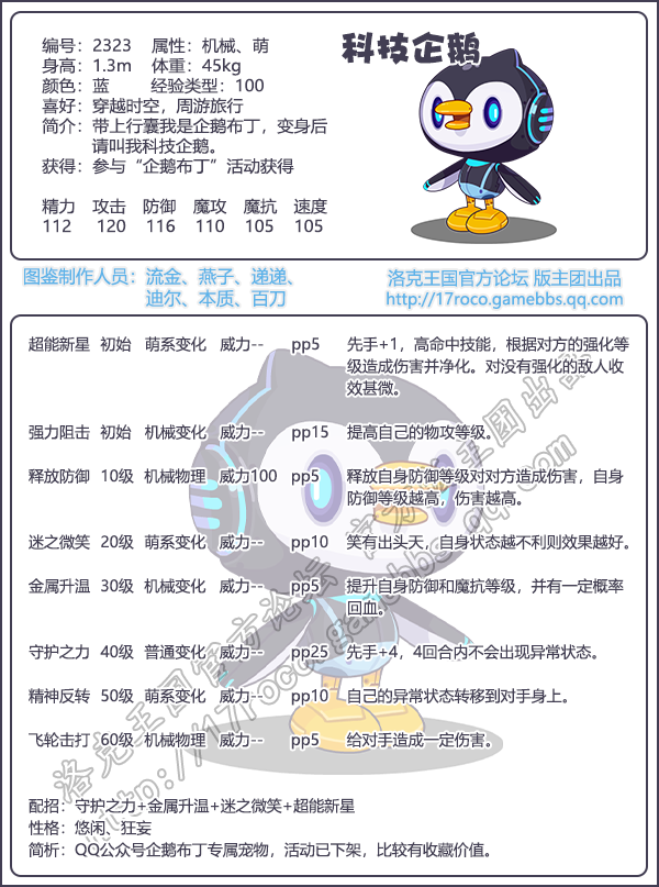 《洛克王国》是一款轻松好玩的休闲类手游,Q萌的游戏画风,玩家将被置身于一个精彩的世界中!游戏中拥有海量的宠物精灵,下面手游网小编给大家带来了《洛克王国》科技企鹅技能表图鉴介绍,想要知道【科技企鹅】信息的小伙伴速来围观吧!