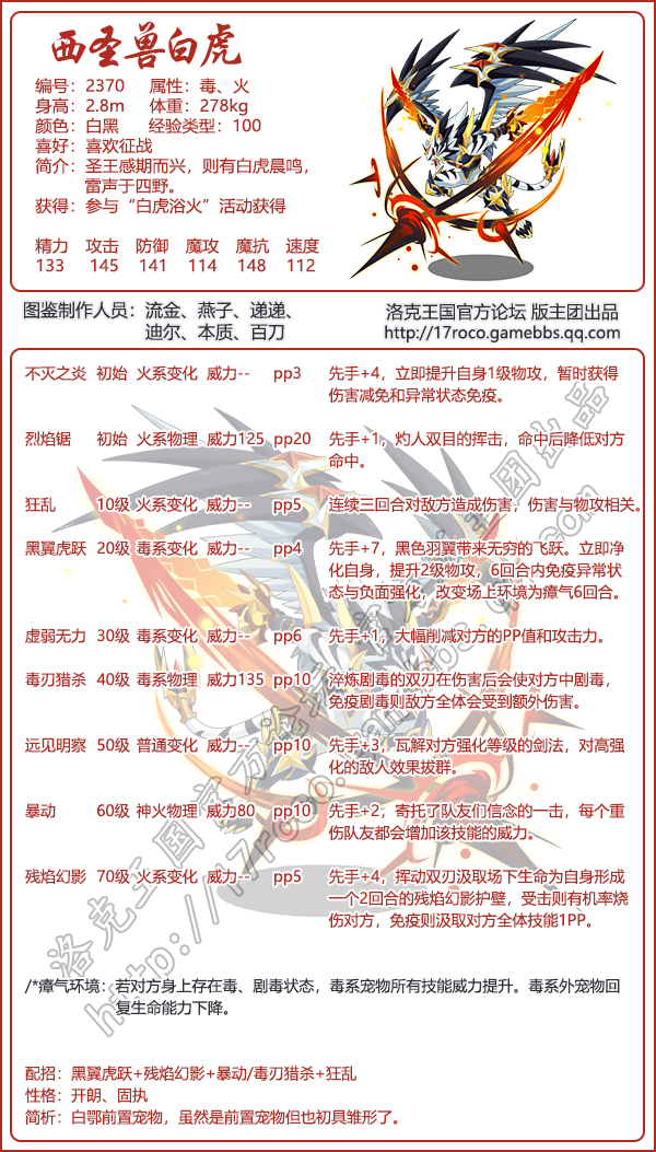 以上就是小编整理带来的《洛克王国》西圣兽白虎技能表图鉴,大家还喜欢吗?更多精彩内容,请点击关注手游网,小编将持续为您更新!