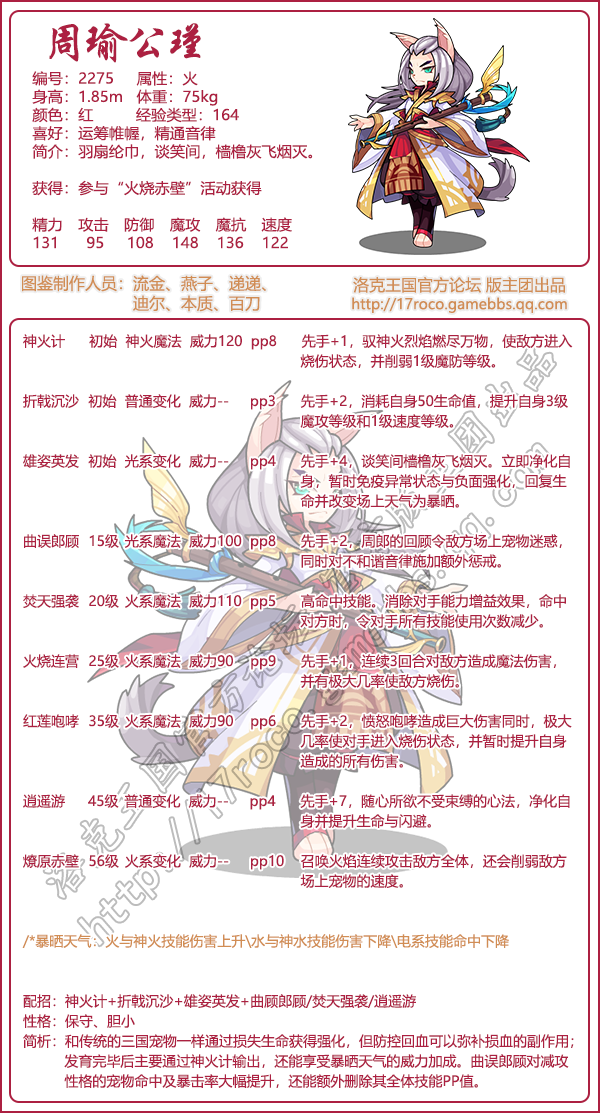 以上就是小编整理带来的《洛克王国》周瑜公瑾技能表图鉴,大家还喜欢吗?更多精彩内容,请点击关注手游网,小编将持续为您更新!