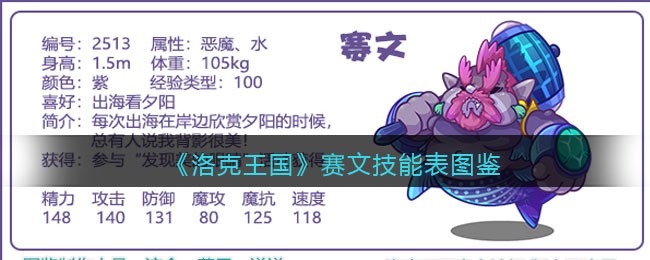 《洛克王国》赛文怎么样,厉害吗?游戏中宠物角色非常多,【赛文】宠物的技能属性是什么,该如何配招呢?下面手游网小编就给大家带来了《洛克王国》赛文技能表图鉴介绍,一起看看吧!