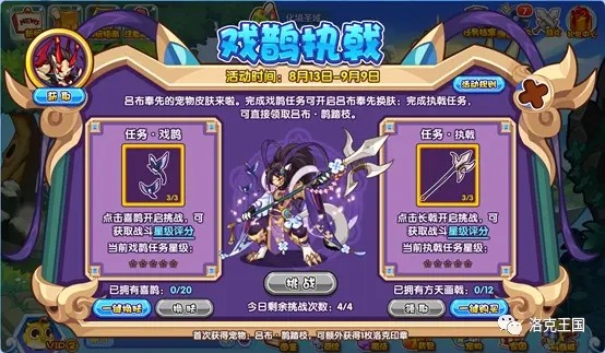 执戟任务是挑战任务,根据战斗时表现及所携带宠物的特征进行星级评分。