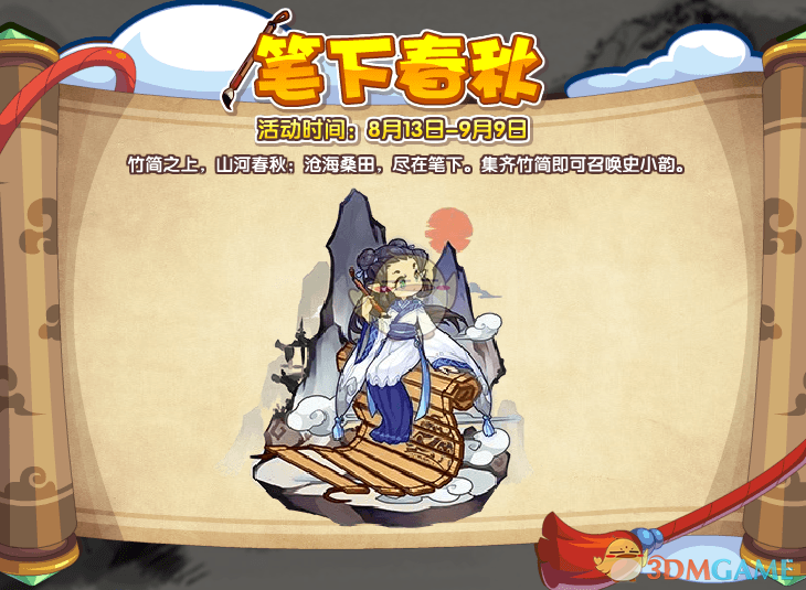 竹简之上,山河春秋;沧海桑田,尽在笔下。集齐竹简即可召唤史小韵。