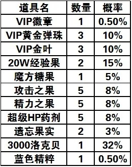 在本次活动中,大家每次点亮花灯还可以额外获得两次物品,这个时候就要看大家的手气啦!物品掉落概率公示如下: