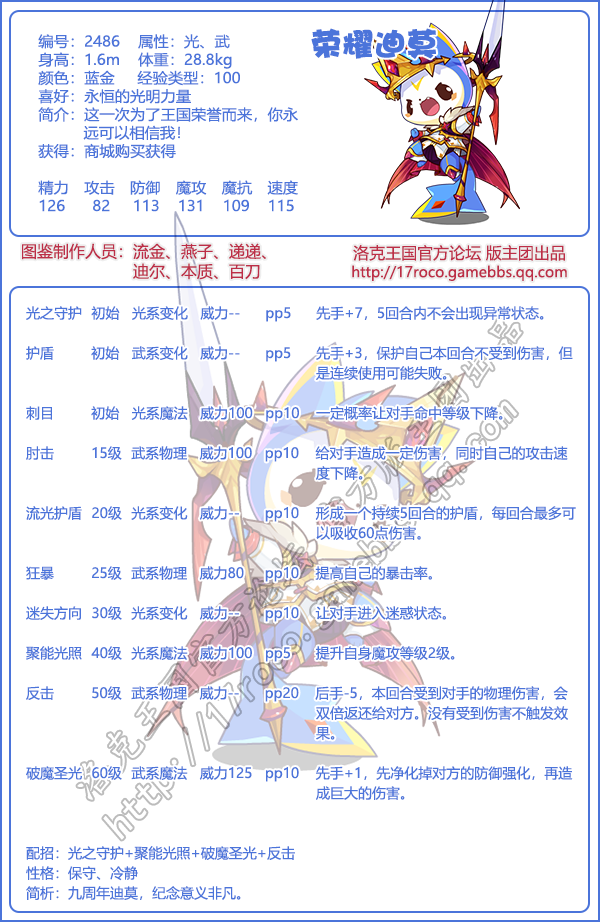《洛克王国》荣耀迪莫怎么样,厉害吗?游戏中宠物角色非常多,【荣耀迪莫】宠物的技能属性是什么,该如何配招呢?下面小编就给大家带来了《洛克王国》荣耀迪莫技能表图鉴介绍,一起看看吧!