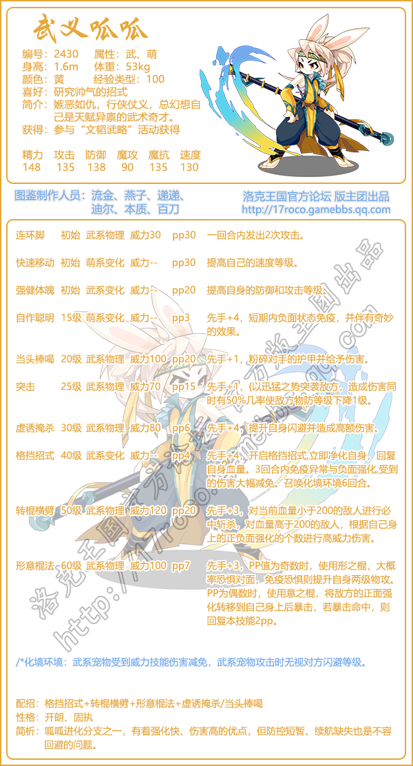 《洛克王国》武义呱呱怎么样,厉害吗?游戏中宠物角色非常多,【武义呱呱】宠物的技能属性是什么,该如何配招呢?下面小编就给大家带来了《洛克王国》武义呱呱技能表图鉴介绍,一起看看吧!
