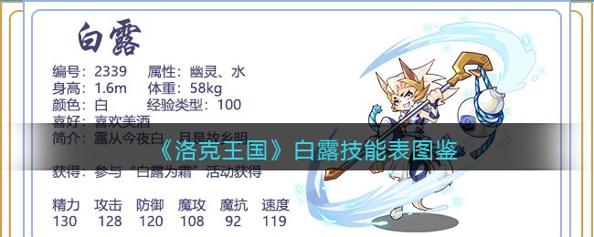 《洛克王国》白露怎么样,厉害吗?游戏中宠物角色非常多,【白露】宠物的技能属性是什么,该如何配招呢?下面小编就给大家带来了《洛克王国》白露技能表图鉴介绍,一起看看吧!